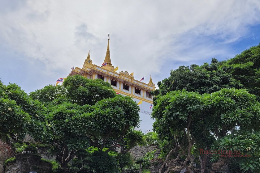 A lépcsőkön haladva lassan magad mögött hagyod Bangkok nyüzsgését. A forgalom zaja tompul, a levegő frissebbé válik, és a templomi harangok finom csengése tölti be a teret. A kapaszkodó mentén kis arany Buddha-szobrok és spirituális díszítések kísérnek, amelyek már az út során meditatív hangulatot teremtenek. Ez az emelkedés nemcsak fizikai, hanem lelki utazás is: lépésről lépésre érzed, ahogy a város lüktetése helyét átveszi a csend és a nyugalom.